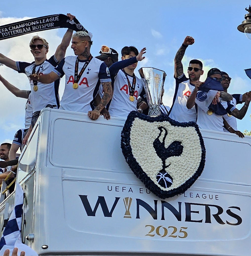 But here we are in 2025. Europa League Champions. Now aged 21 it was almost a case of my son taking me to the parade down Tottenham High Street, making sure I wasn’t trampled on, buying ridiculously priced flags and ensuring we got to the front of the barriers.